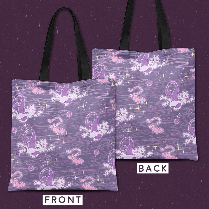 Mew And Mewtwo Pattern Reusable Canvas Tote Bag Etsy